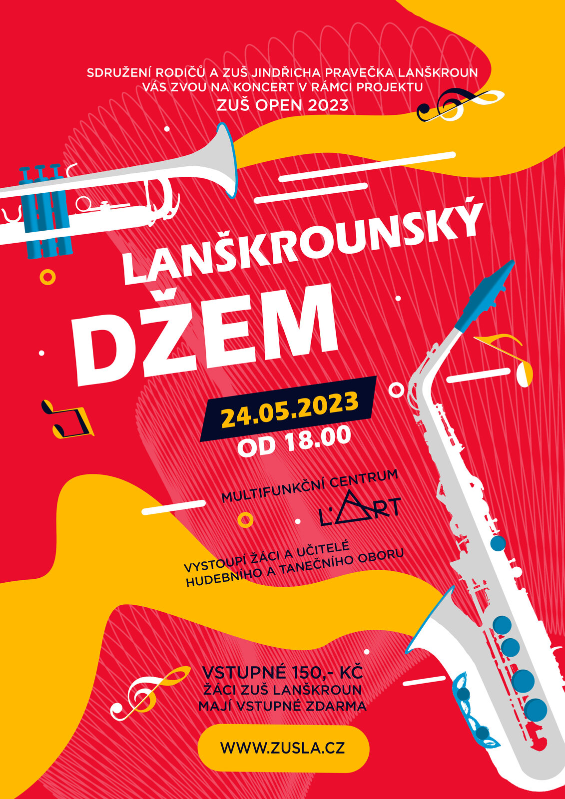 Sdružení rodičů a ZUŠ Jindřicha Pravečka Lanškroun Vás zvou na koncert v rámci projektu ZUŠ OPEN 2023 Lanškrounský džem. Vystoupí žáci ZUŠ.