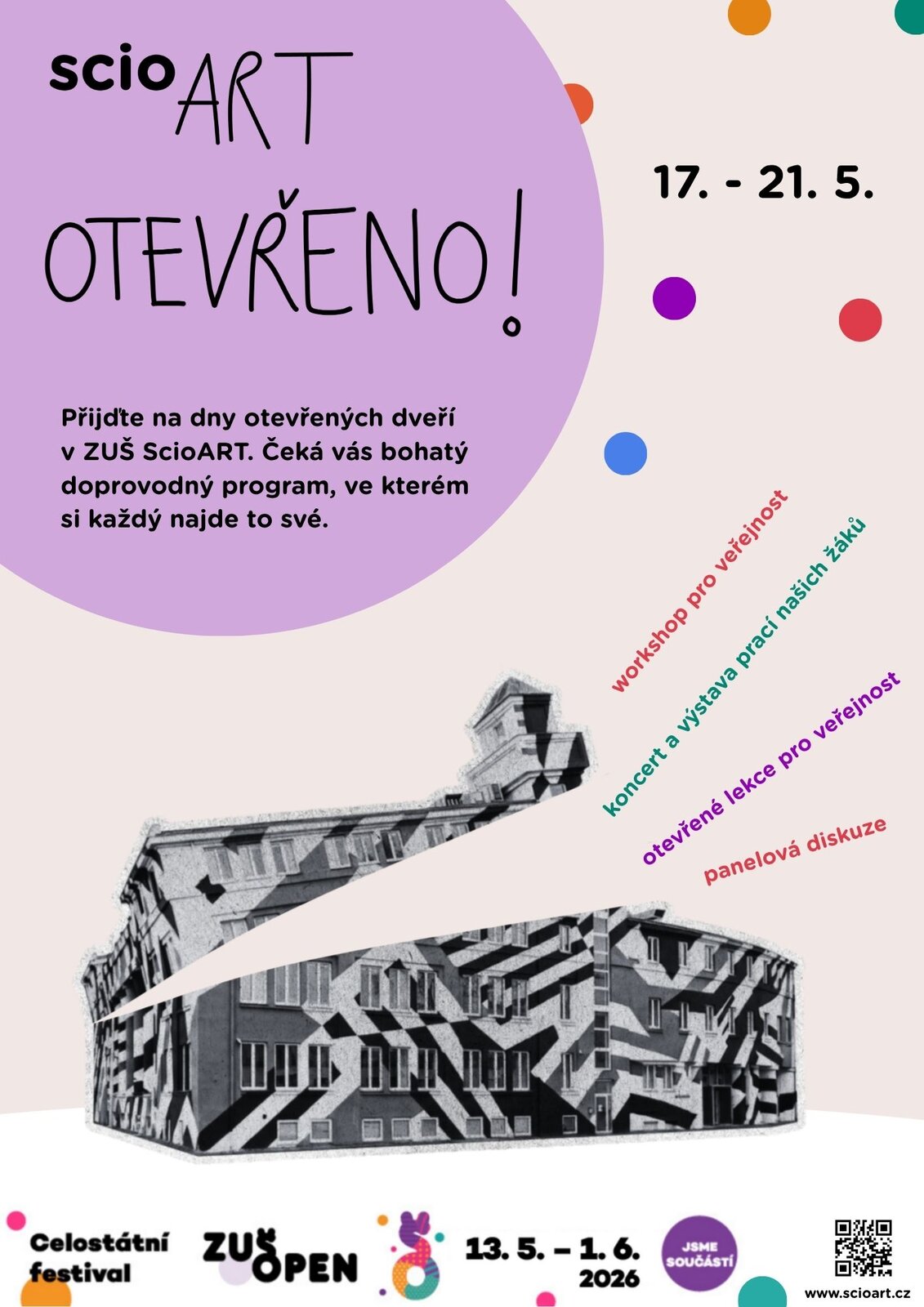 V rámci Dnů otevřených dveří v ZUŠ ScioART (ScioART OTEVŘENO! 17. - 21. 5. 2026) bude pondělní výuka ve studiu #MĚSTO a DRAMA+ otevřena veřejnosti.