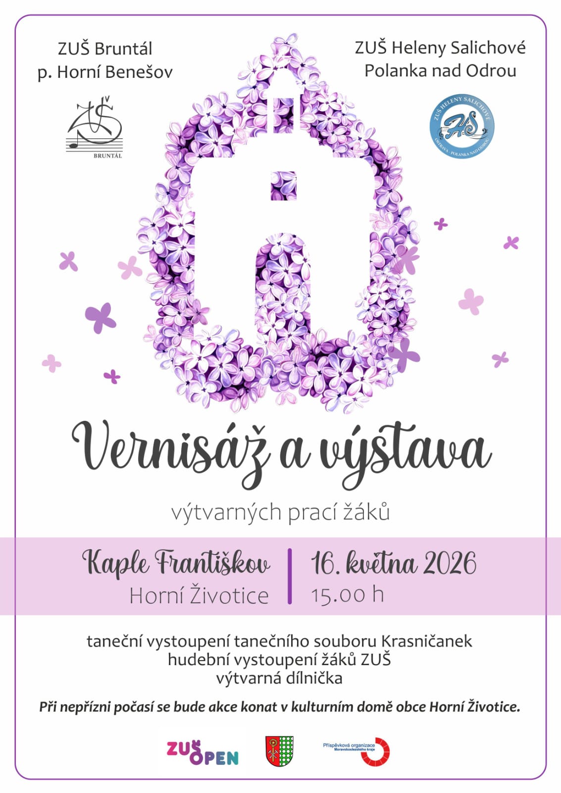 ZUŠ H. Salichové a ZUŠ Bruntál zvou na vernisáž výstavy prací žáků výtvarného oboru, která představí tvorbu mladých autorů z obou škol. Návštěvníci se mohou těšit na pestrou přehlídku výtvarných děl napříč technikami i věkovými kategoriemi.