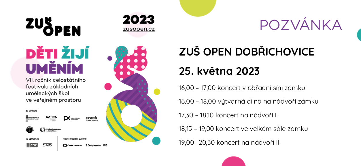Srdečně vás zveme na ZUŠ OPEN Dobřichovice 2023, přijďte si spolu s námi užít krásný večer.