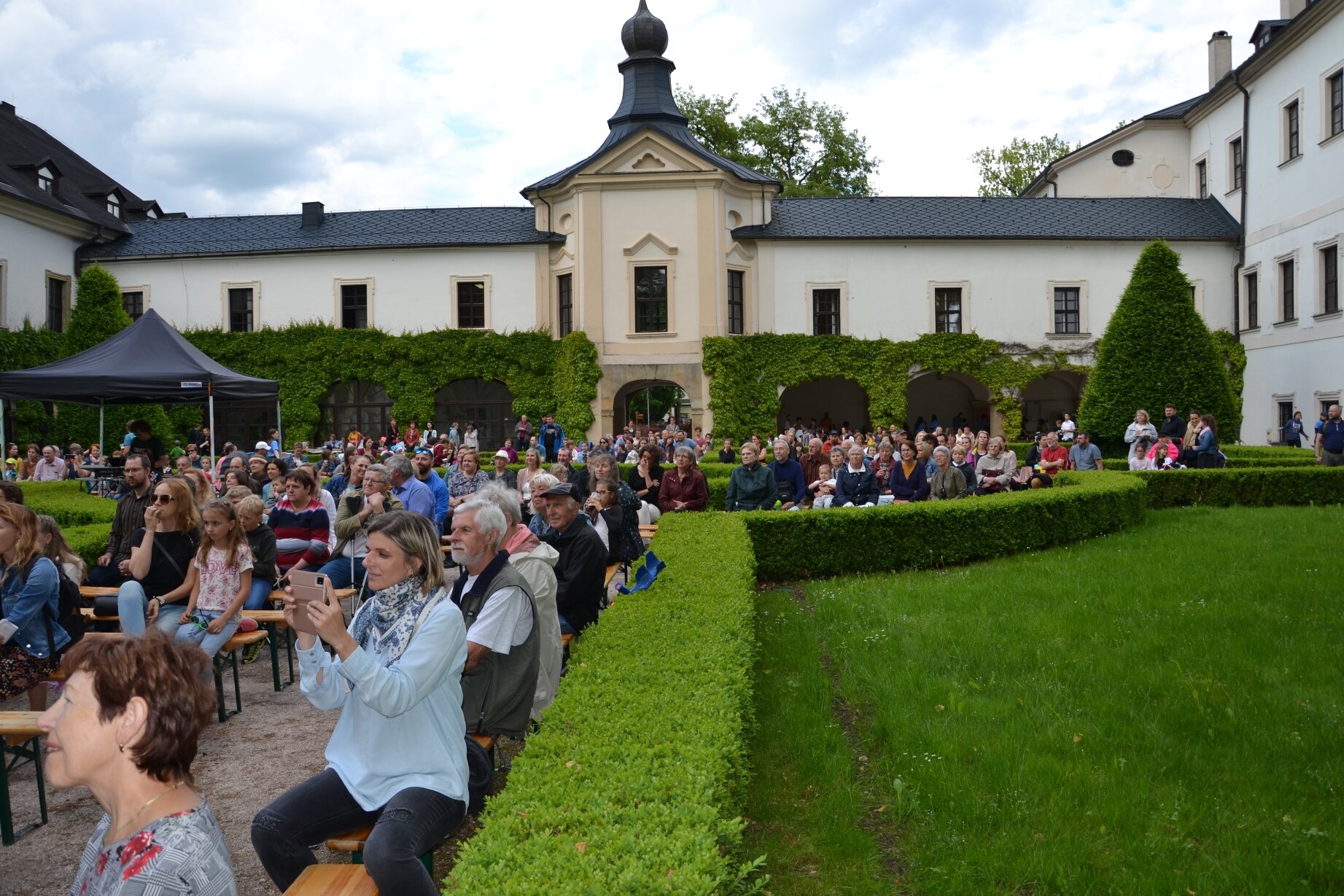 Nádvoří letohradského zámku rozezní sólisti, soubory, sbory a orchestry našeho hudebního oboru. Výtvarný obor se bude prezentovat výstavou svých prací v knihovně na zámku a na nádvoří bude připravena výtvarná dílna.