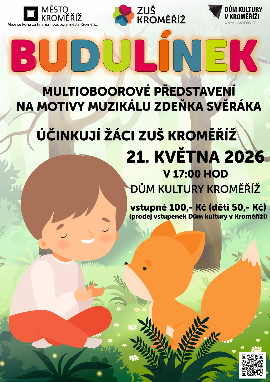 Základní umělecká škola Kroměříž zve rodiče s dětmi na výjimečné rodinné představení – zpívanou pohádku „O Budulínkovi“, inspirovanou oblíbeným zpracováním Zdeňka Svěráka a Jaroslava Uhlíře.