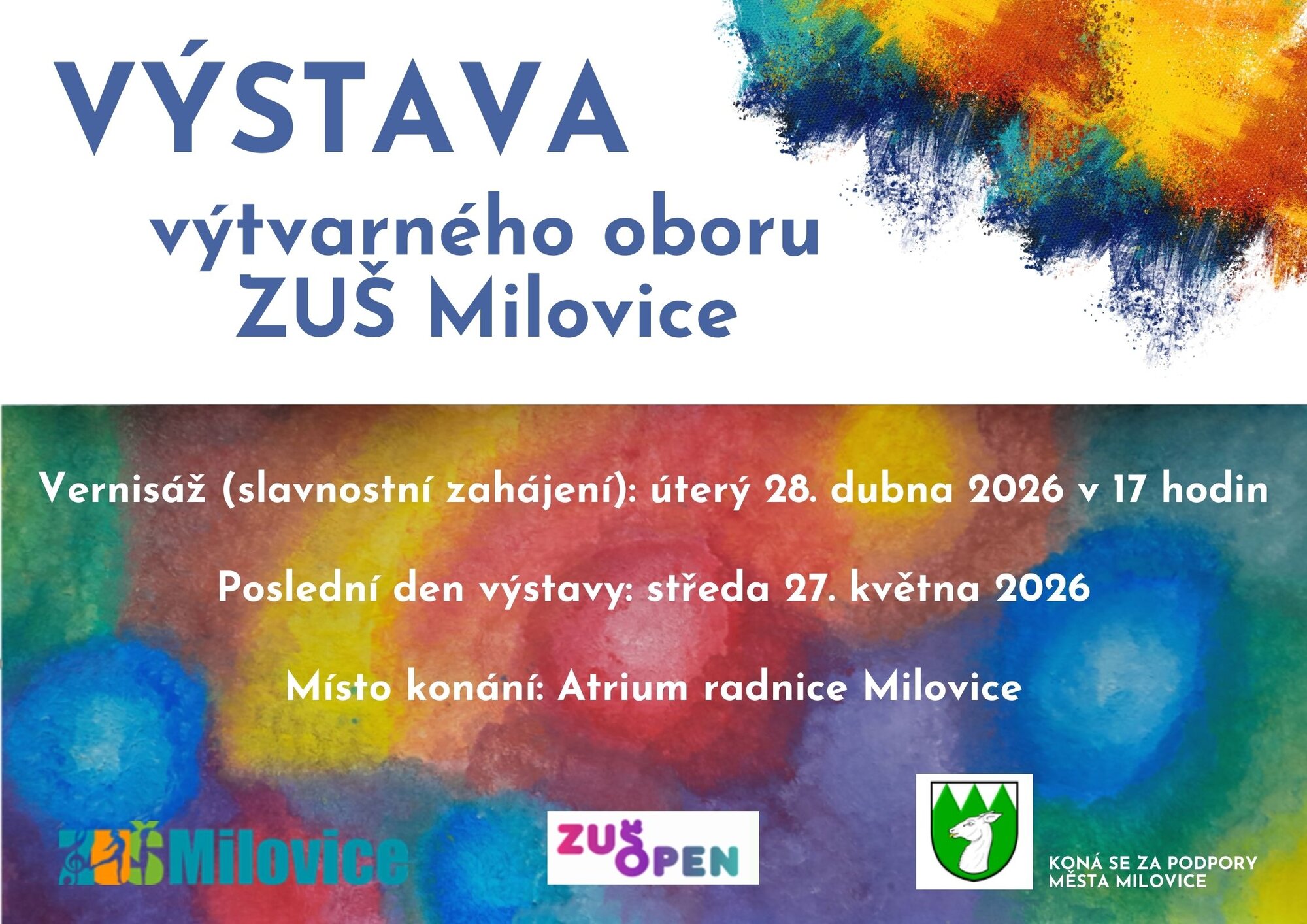 Akce se koná v rámci celorepublikového festivalu ZUŠ Open a za laskavé podpory města Milovice. ️